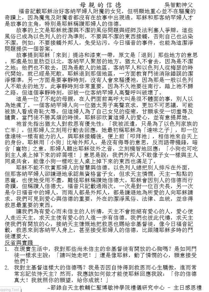 2017.08.20_ Twenty Sunday In Ordinary Time 常年期第二十主日_彌撒經紙
